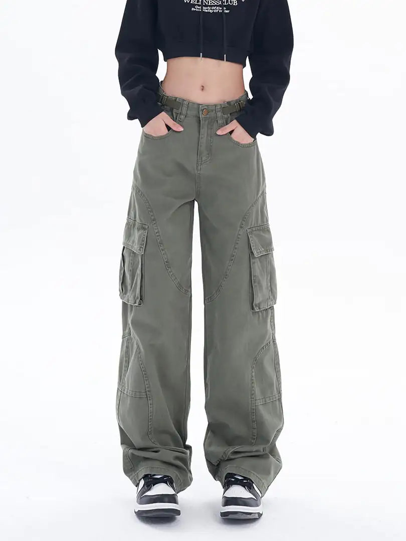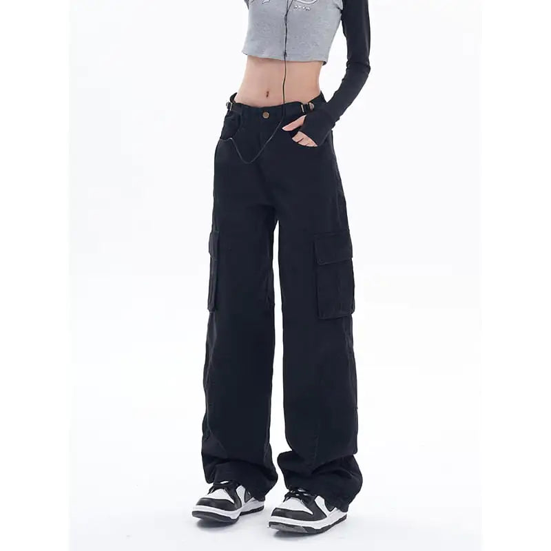 Loose Casual Wide-Leg Trousers – High Waist Denim Style