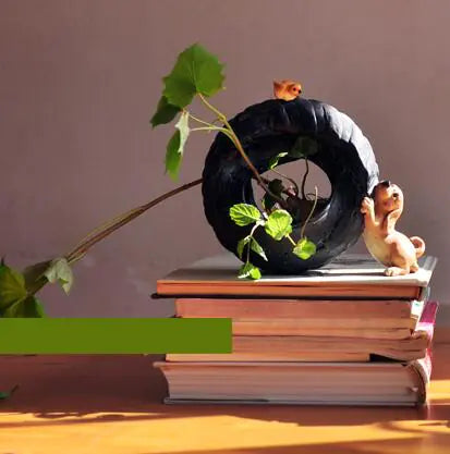 Realistic Dog Figurine with Flower Pot – Cute Desktop Decor