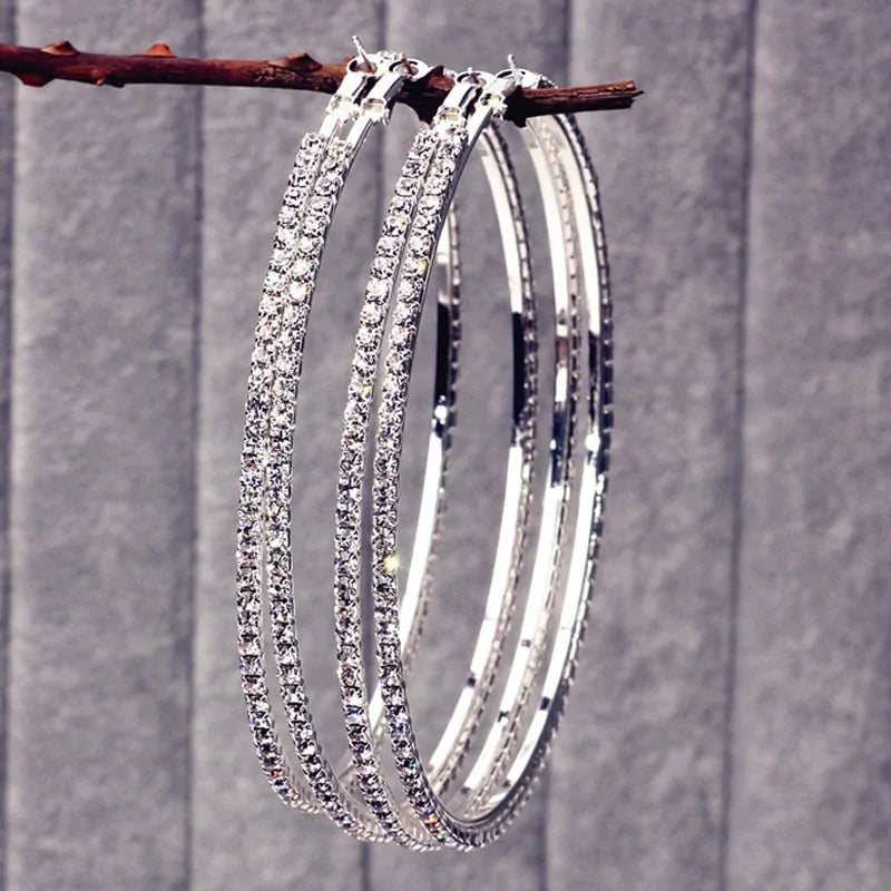Pendientes grandes redondos de plata para mujer